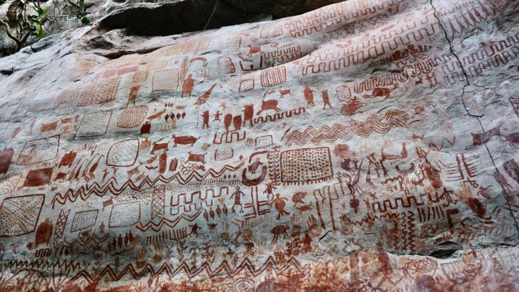 Uso de pigmentos naturales, minerales y materiales derivados de rocas.